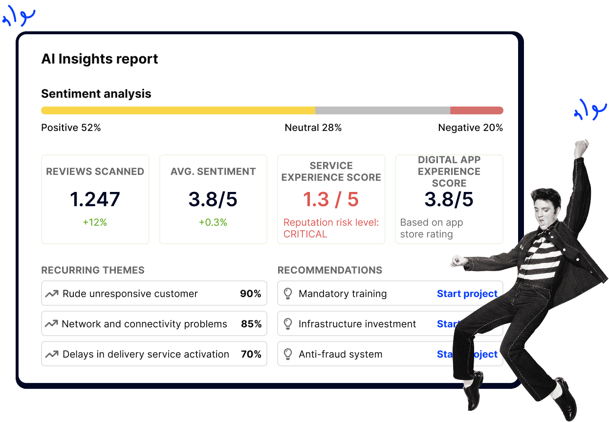 AI identifies recurring problems, emotional drivers, and opportunity areas.