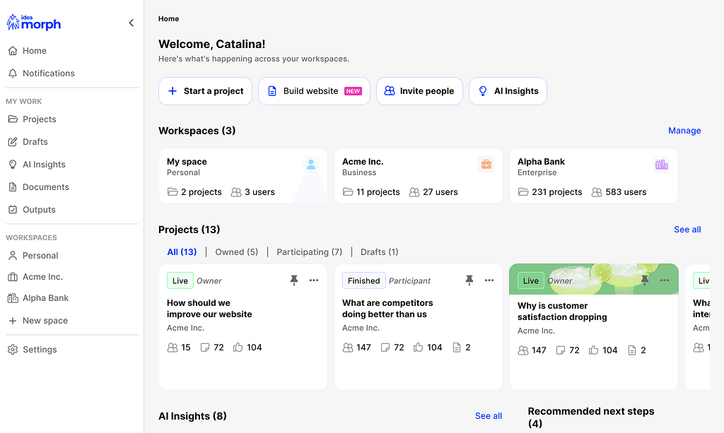 Start guided ideation and validation projects with teams, customers, and experts.