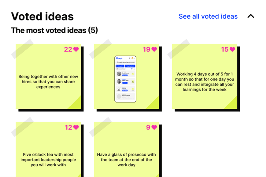 Run structured prioritisation sessions - voting, ranking, reaction scoring. See in real time what gets the most signal. Kill the ideas nobody actually wants. Invest in the ones that do.