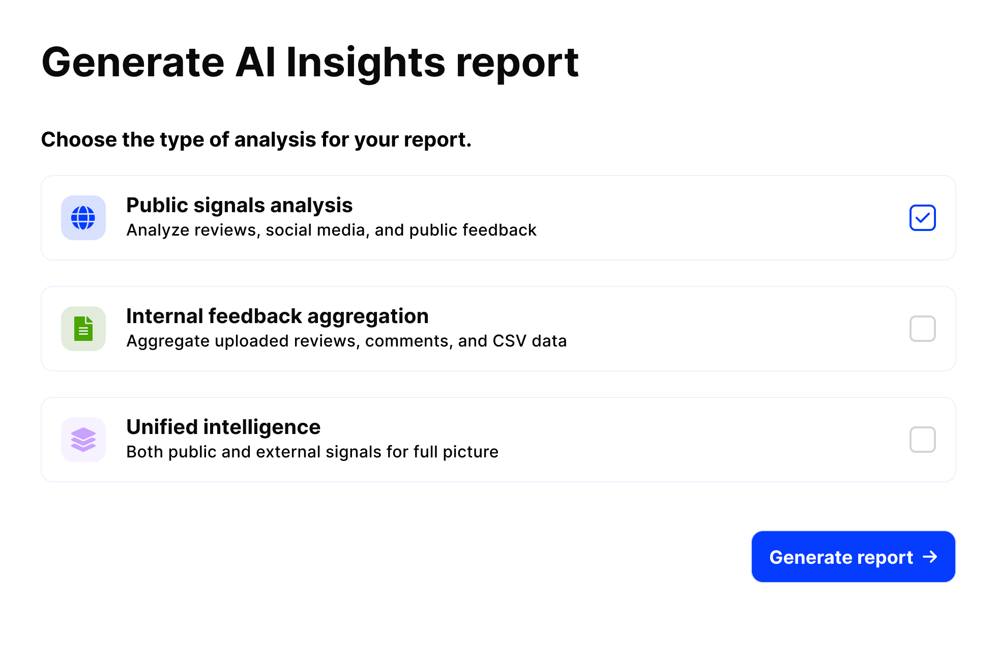 All signals in one place: customers, market, internal, teams.