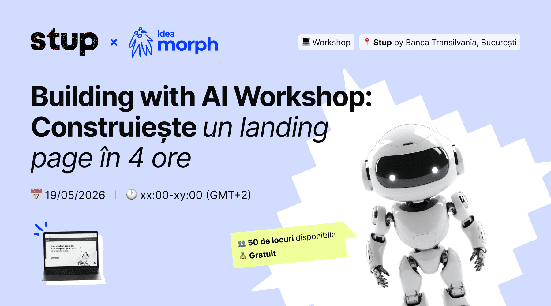 Nu ai nevoie de cunoștințe tehnice avansate; workshopul este gândit special pentru antreprenori și profesioniști fără background tehnic.
